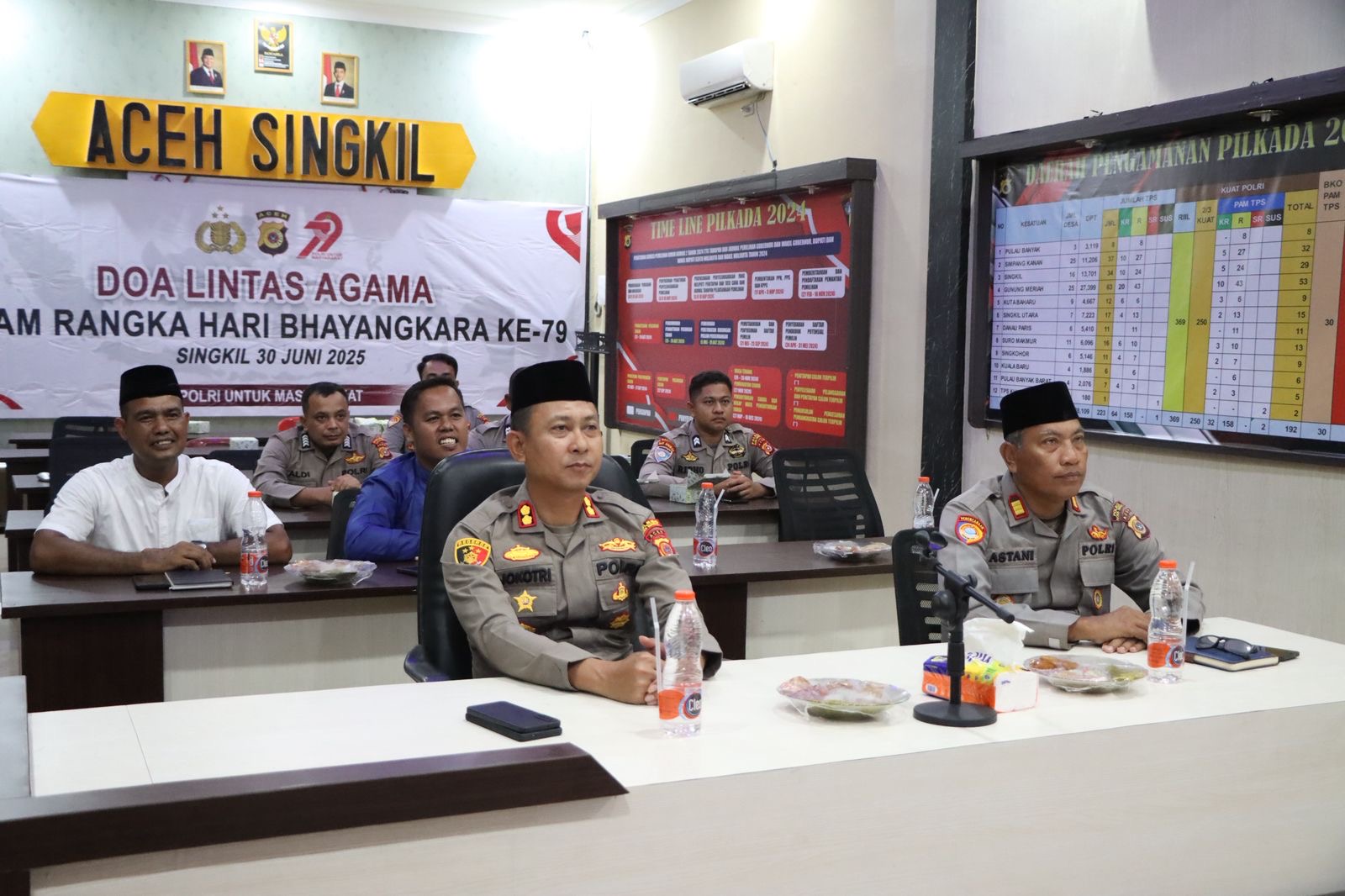 Singkil – Dalam rangka menyambut Hari Bhayangkara ke-79 yang jatuh pada 1 Juli 2025, Polres Aceh Singkil menggelar kegiatan Doa Lintas Agama Acara ini berlangsung khidmat di aula Mapolres Aceh Singkil dan terhubung langsung dengan Mabes Polri melalui Zoom Meeting secara serentak di seluruh Indonesia, Senin (30/6/2025).