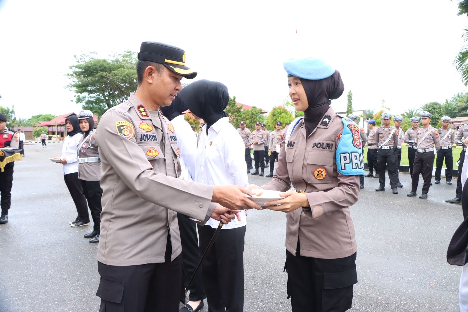 Suasana apel yang semula berlangsung seperti biasa mendadak berubah hangat dan haru ketika Kapolres, didampingi para pejabat utama, memberikan ucapan selamat Hari Jadi Polwan dan menyerahkan tumpeng Kasat Intelkam selaku Polwan Paling senior di Polres Aceh Singkil.