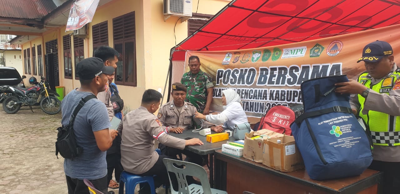 Singkil – Dalam rangka memastikan kondisi kesehatan personel yang bertugas di lapangan, Seksi Kedokteran dan Kesehatan (Si Dokkes) Polres Aceh Singkil melaksanakan pemeriksaan kesehatan terhadap anggota Polri, TNI, serta personel BPBD yang melakukan pengamanan dan pelayanan di Posko Bantuan Bencana Alam di wilayah Kabupaten Aceh Singkil, Senin (8/12/2025).